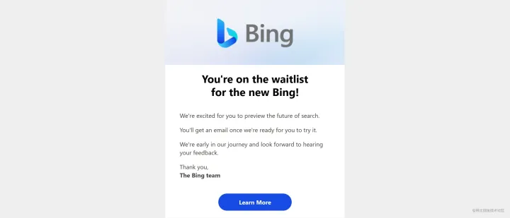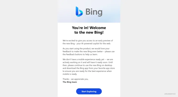 等待微软通过后,你会收到欢迎邮件,你就可以使用新必应
